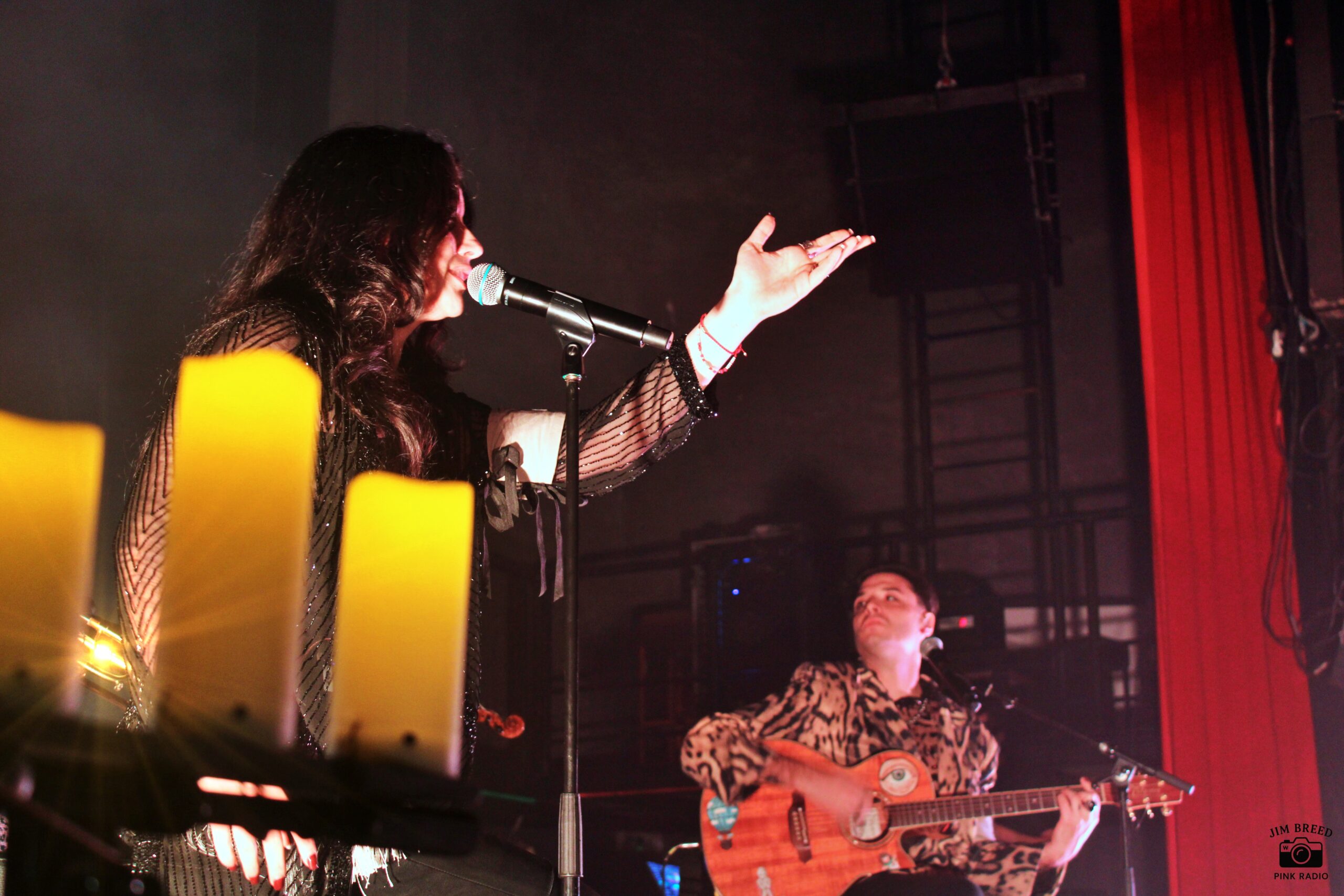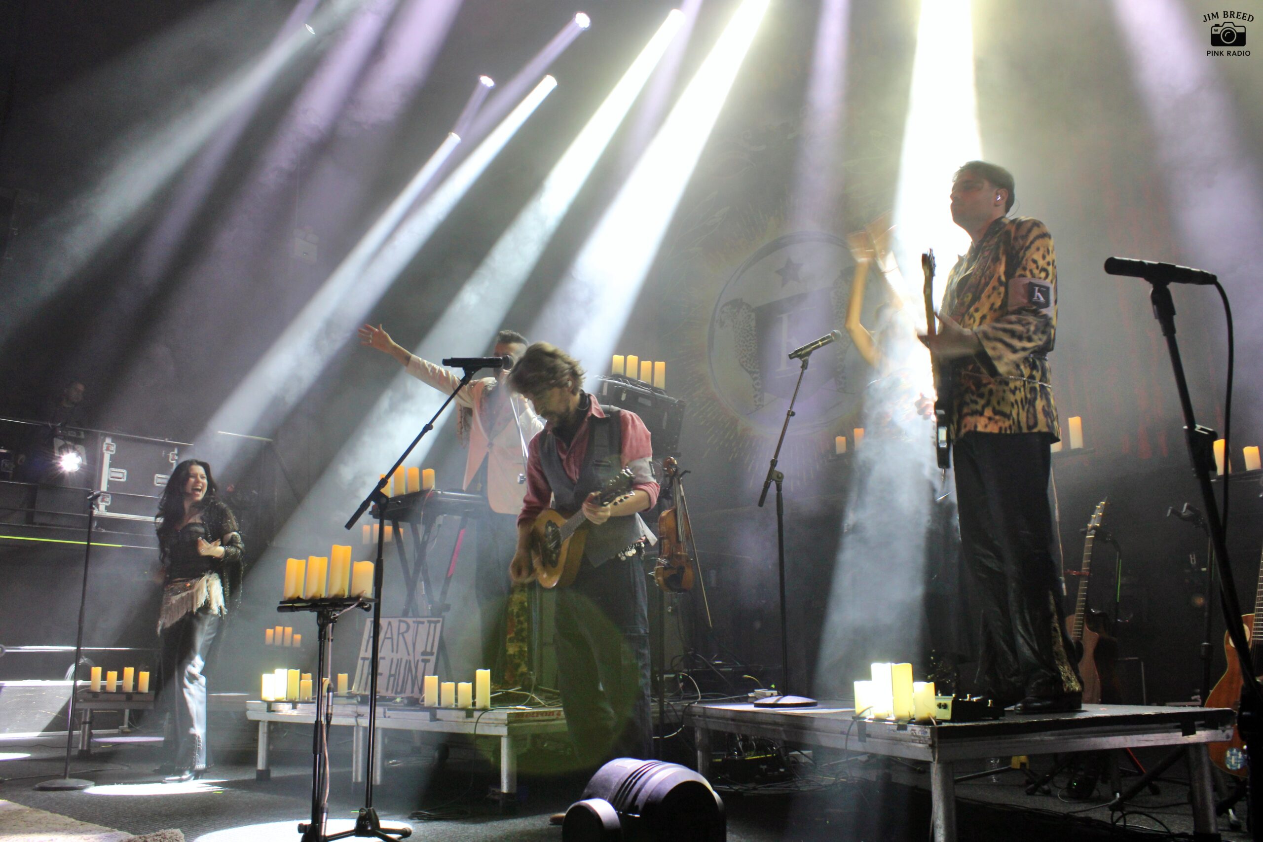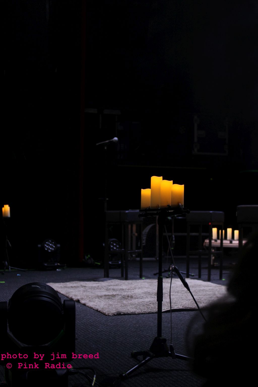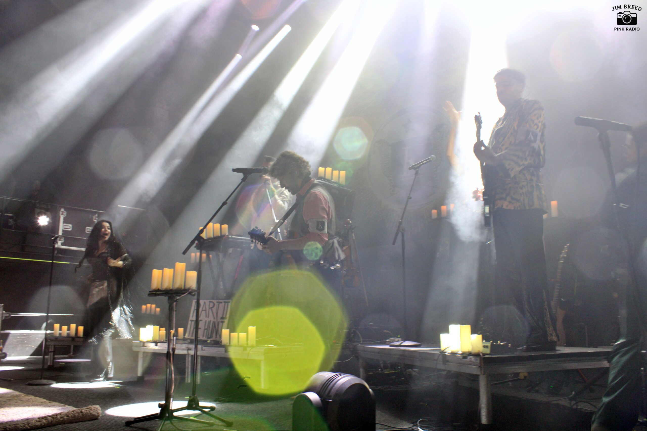 Η σκηνή αποκαλύπτεται σε πλήρη λιτότητα: λίγες καρέκλες, ηλεκτρικά κεριά και στο κέντρο τα decks του Guillaume de Kadebostany. Η αισθητική παραπέμπει περισσότερο σε gothic/darkwave τελετουργία παρά σε electro pop, dance live. Σαν μια παράσταση που πρόκειται να ξεδιπλωθεί μέσα σε έναν σύγχρονο καθεδρικό ναό.